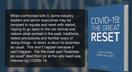 As a matter of fact, Klaus Schwab wrote a new book called COVID-19: The Great Reset and in the book, the purpose of this plandemic – destroying “business as usual” – is clearly delineated.