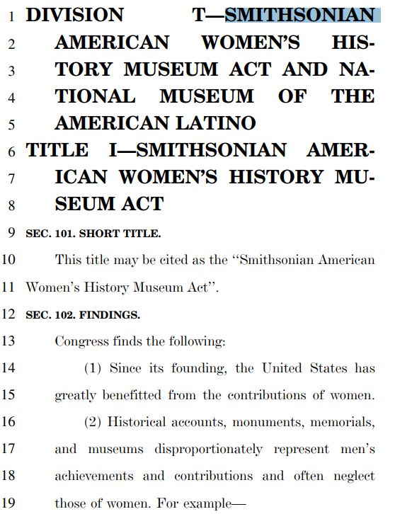 Our nation’s capital is getting a couple of new museums as part of the COVID “relief” bill.