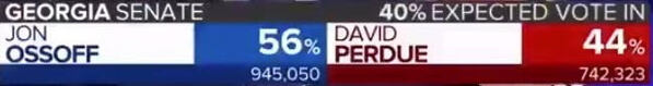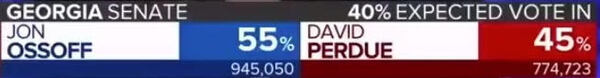 As you see in the above screengrab, Perdue had 774,723 votes, which constituted 45% of the total vote at the time: