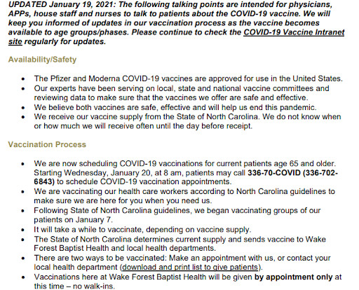 Vaccine ‘talking points’ (Courtesy of Sarah Absher)